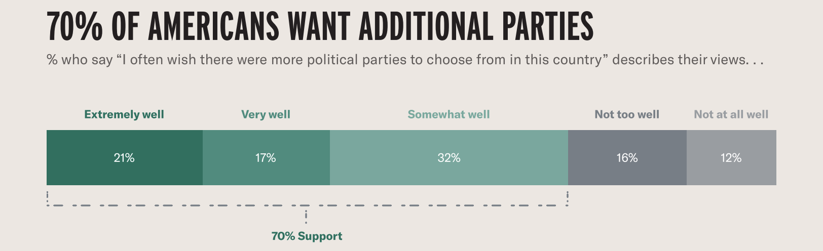 One large study of dozens of countries over decades finds that electoral systems with average district magnitudes of between four and eight generate highly proportional results, simpler government coalitions, and strong government performance “while limiting party system fragmentation” associated with larger district magnitudes. According to a quantitative model developed by Matthew Shugart and Rein Taagepera, assuming the overall size of the U.S. House remains constant, adopting proportional multi-member districts with an average district magnitude of four to eight in the U.S. would likely result in a total of three to four nationally competitive parties. We could think of this number as a “goldilocks zone” — moving beyond the rigidity of today’s two parties while avoiding the risks of fragmentation.